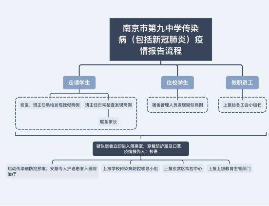 另外,南京九中还对开学进行操作预演:如有异常——进入独立的临时隔离室——校医按规定处理(登记信息、通知家长、上报等)。