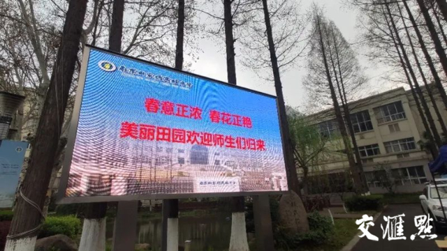 “欢迎回校”的大屏幕已经亮起来了。