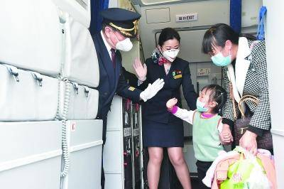 三月十九日,MU2806航班落地南京,顾湘荷深情送别每一位旅客。东航江苏公司供图