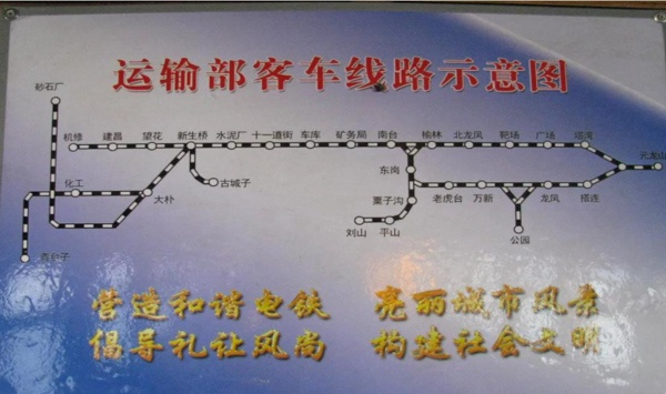 老电铁车厢内的线路示意图。图片由本文作者提供。