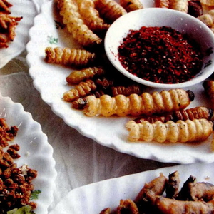 在大江南北的餐桌上,蟋蟀、蚂蚱、蜈蚣、蝎子、蜘蛛……这些昆虫并不鲜见。有地方以“百虫宴”为当地的传统饮食特色,油炸蝗虫、腌酸蚱蜢、甜炒蝶蛹、虫虫拼盘、烧烤蚂蚱串、竹蛹三明治、爆炒蝇蛆等等,品种多样,价格不菲。