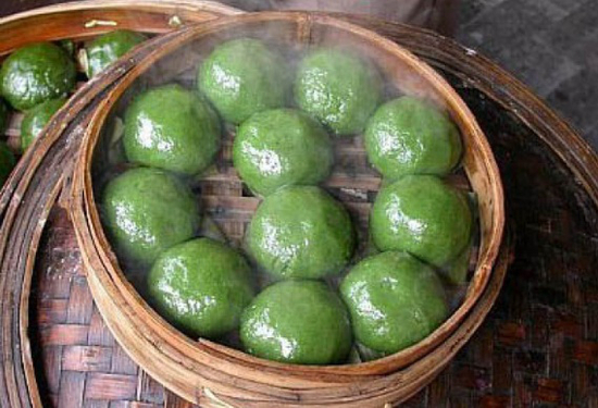 清明时节,江南一带有吃青团子的风俗习惯。青团子是用一种名叫“浆麦草”的野生植物捣烂后挤压出汁,接着取用这种汁同晾干后的水磨纯糯米粉拌匀揉和,然后开始制作团子。团子的馅心是用细腻的糖豆沙制成,在包馅时,另放入一小块糖猪油。团坯制好后,将它们入笼蒸熟,出笼时用毛刷将熟菜油均匀地刷在团子的表面,这便大功告成了。