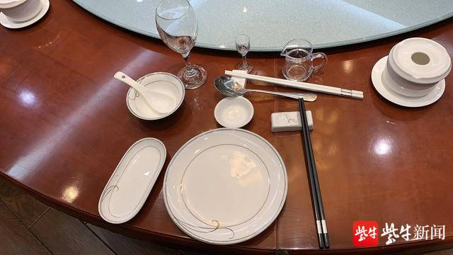鸿之运酒店位于泰州主城区核心,平日生意火爆到“一桌难求”。20日上午,记者在酒店内看到,众多服务员正在大堂以及包间内摆台,能容纳12人的餐桌只摆放了6-7客餐具,餐具包括两只餐盘、一口放有汤匙的小碗,一只醋碟,一双黑色的筷子。在黑色筷子的前方,放有一双白色的筷子以及一根银色的汤勺,它们与其他餐具成垂直方向。服务员介绍,白色筷子和银色汤勺就是公筷、公勺。