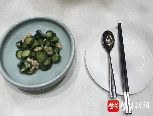 大蓉和饭店,一碟拌黄瓜旁摆放了公筷公勺