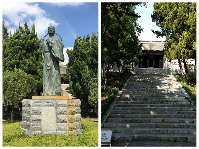 文游台不大,进门即见一尊秦观的立身塑像,手持书卷,眺望远方,似乎在酝酿着什么绝妙佳句。
