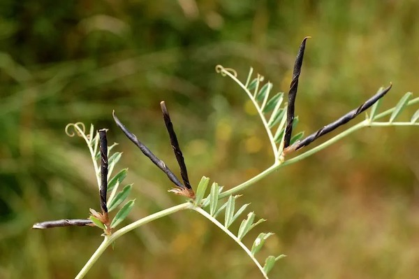 翘摇的嫩头应当可以炒食可汆汤,但在我记忆里似乎没有人食此物,所以味道如何至今未曾尝过;翘摇子结实时如微型豌豆,但狭长些,熟时壳作黑色,将熟未熟时半黑半青,可做哨,摘下去籽,置口中吹之,呜呜然,三四月间,空气里有着一种动人的清芬,在水边听来,那声音清脆而悠远,如一缕轻风飘过水面,飘过大片的麦田,直到遥远的天际。