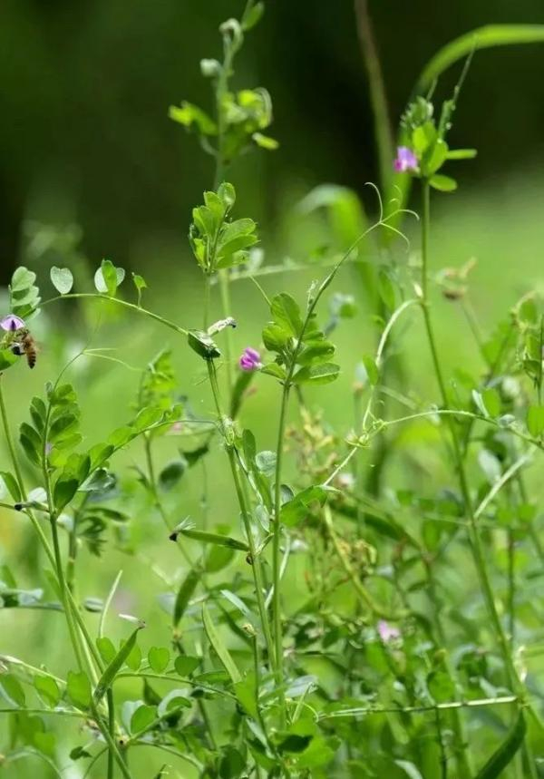 回到薇这个字,最初读诗经时望文生义,想这“薇”是不是野蔷薇呢?以至于自己曾经尝过野蔷薇的嫩叶,居然木渣渣的,实在不好吃,后来想想,应当是一种草类的植物,而不应是木本的,但到底搞不清,仍是一肚子疑团存在心里,这疑问还是在读到《毛诗品物图考》才解开了——上面注有:“薇,巢菜,又名野豌豆。”书中有图,上面一片片椭圆形的对叶。
