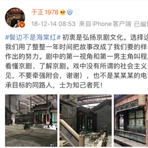 《鬓边不是海棠红》制片人于正微博截图