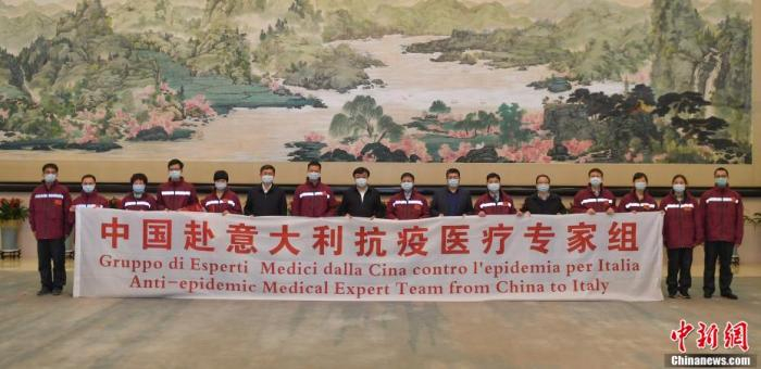 3月12日,由国家卫健委和中国红会组建的抗疫医疗专家组一行9人携31吨医疗物资抵达意大利首都罗马;6天后,第二批中国抗疫医疗专家组飞抵米兰;25日,第三批抗疫医疗专家组一行14人前往米兰……
