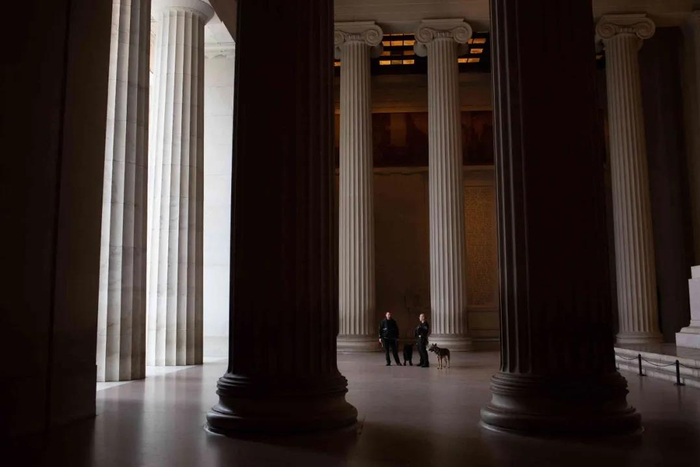樱花失去了吸引力,空旷的林肯纪念堂。
