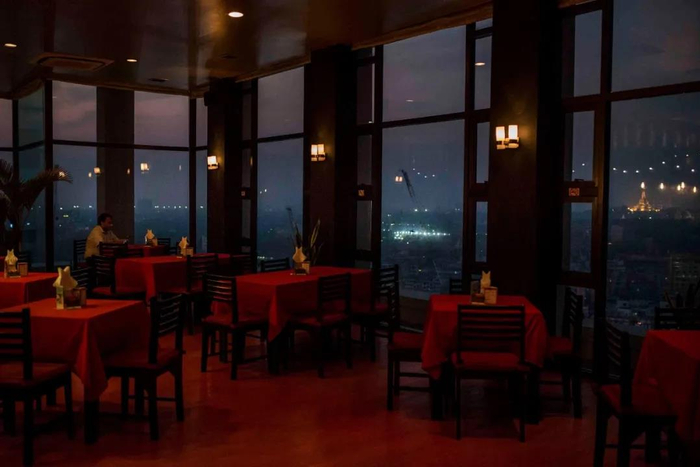 一个以夜生活闻名的地方,一位孤独享用晚餐的人。