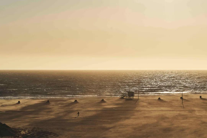 没了足迹,圣莫尼卡的海滩无法辨识。