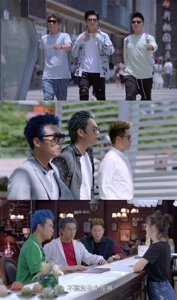 比如这三个中年男人大部分时间都聚在一起,干嘛呢,不是喝酒就是聊天。播完10集,他们一起喝酒的次数,两只手已经数不过来了,平均每一集都要喝个两三回。从澳大利亚回来去白志勇家喝,出门散心去餐馆喝,餐馆喝完酒吧喝;接着大白天又在江小美的酒吧喝,到了晚上三男人又聚在家里喝,家里喝完又去酒吧喝;三男人为了变年轻加入年轻人派对继续喝;又一个晚上,仨人又喝得醉醺醺;染了头发继续到酒吧里喝,酒吧喝完回家喝;仨人闹矛盾后喝,和解后又喝……总之吧,白天喝完晚上喝,洋酒、红酒、白酒、啤酒轮番上。