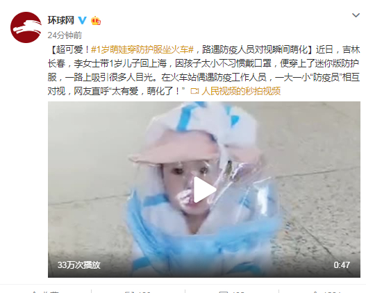 视频-超可爱!1岁萌娃穿防护服坐火车 路遇防疫人员对视瞬间萌化