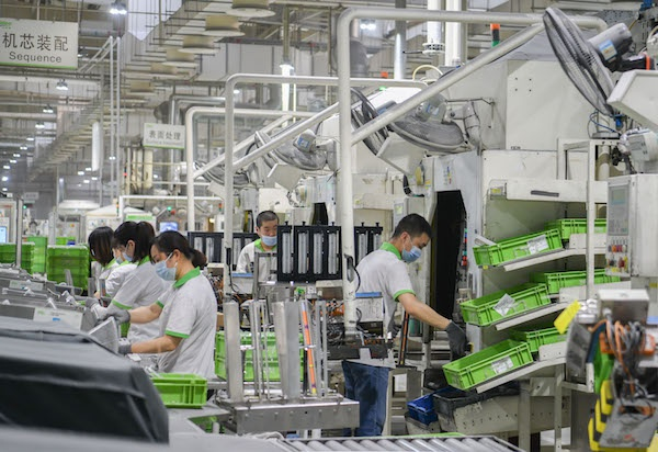 2020年3月29日,法雷奥汽车空调湖北有限公司的工人在生产线上工作。 新华社 图