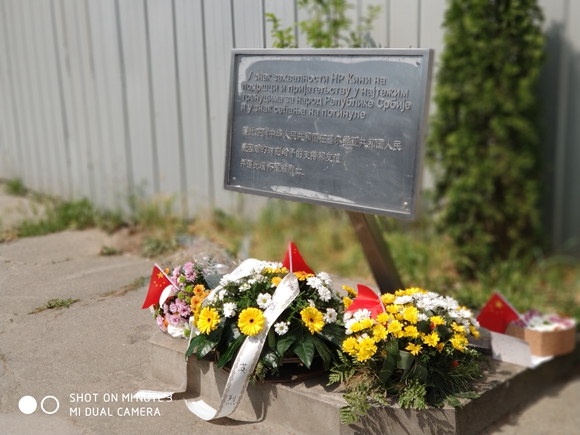 上图为本文作者于2018年5月7日拍摄,中国铁设塞尔维亚分公司全体员工前往贝尔格莱德大使馆遗址纪念碑悼念逝去的英雄。这是一段惨痛的回忆,电视上不间断的播报现场新闻,人们一方面期待英雄归来的奇迹发生,一方面等待事态的进一步发展。全国各地民众群情激愤,爆发大规模反美示威活动,并包围各地美国大使馆。
