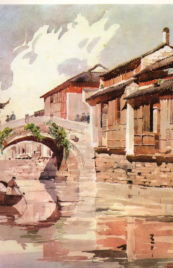 童寯水彩画《苏州山塘水景》