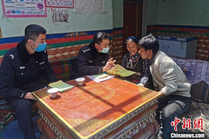 图为日喀则直克边境派出所民警走村入户宣讲民族团结相关政策。 日喀则边境管理支队 供图