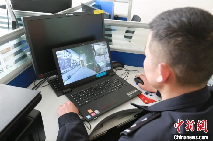 图为阿里边境管理支队民警网上观展“西藏百万农奴解放纪念馆VR展馆”。 李飞飞 摄