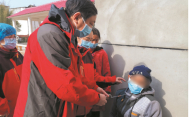 江苏援黄医疗队入户开展诊疗。江苏援黄医疗队医生、南通市第一人民医院党委书记,心胸外科专家仲崇俊赶到大冶市一户居民家中,为去年底做了心脏支架手术的80岁王奶奶检查身体。