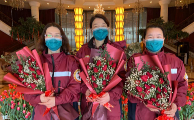 江苏省副省长、省支援湖北前方指挥部总指挥惠建林与黄石市委书记董卫民等到医疗队住地,向部分轮休女队员送上鲜花,向奋战在援鄂战疫一线的巾帼英雄致敬。