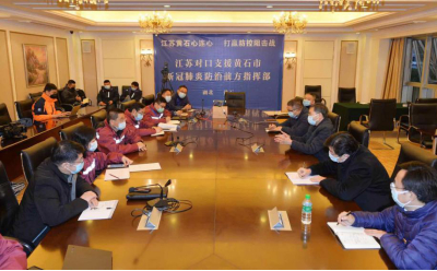 江苏支援湖北疫情防控工作前方指挥部抵达驻地黄石,立即指挥协调医疗队抗击疫情。