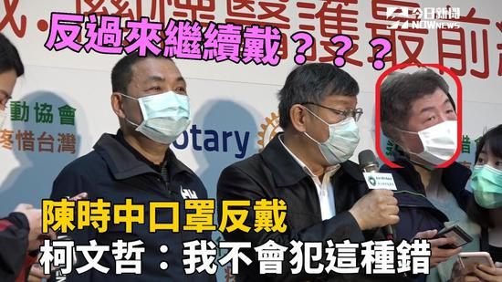 台湾卫生部门最高负责人、抗疫总指挥陈时中参加一个与医疗有关的活动,结果口罩戴反了——注意不是倒了,是反了。活动主持人向他提醒后,医生出身的陈时中竟当场又反过来戴上!难道他不知道暴露在外的一面有风险吗?台湾媒体对此的解释是他太累了,多么善解人意!