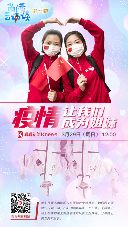 3月22日,上海第三批援鄂医疗队凯旋,并入住青浦的隔离点,开始了为期两周的集中隔离观察。目前,以医护人员们的身体和精神状况良好。在武汉抗疫一线战斗的55天,对全体援鄂医疗队的队员来说,都是一次刻骨铭心的经历。在武汉,他们经受了考验,接受了洗礼,更收获了成长和满满的感动。SMG新闻主播刘仲萌3月29日中午通过视频连线的方式,直播采访了第三批上海援鄂医疗队中的两位护士——同济大学附属东方医院的蔡小红、赵清雅,邀请她们分享在抗疫一线的点滴故事。