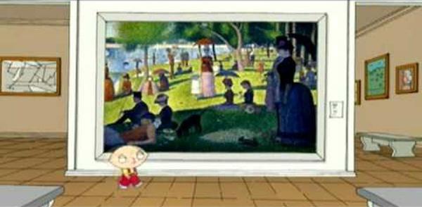 《大碗岛的星期天下午》对现代艺术和流行艺术影响深远,据统计这幅画是全世界被引用次数最多近代绘画艺术品之一。在电影、电视剧、动画甚至戏剧中,我们都能看到它的影子。
