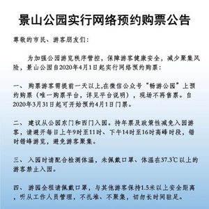 原标题:景山公园4月起实行网络预约购票:现场不再售票