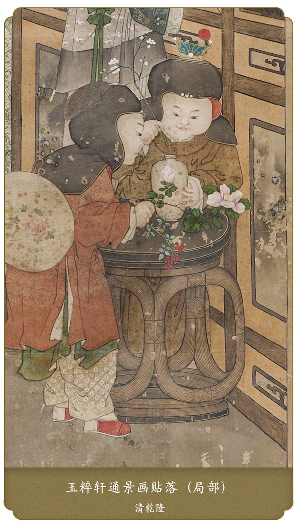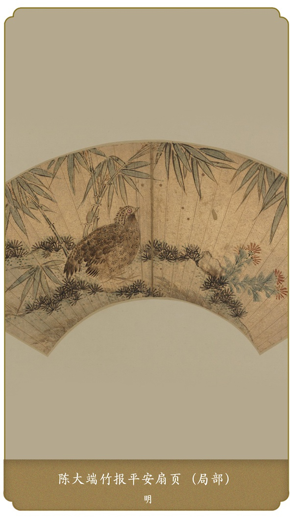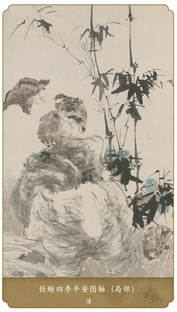 是宁寿宫花园玉粹轩装饰中的皇子采折梅花插入瓶中的图画,还是竹子和鹌鹑双重“平安”加持的国画作品,都在祝愿这个世界的平安与春信。