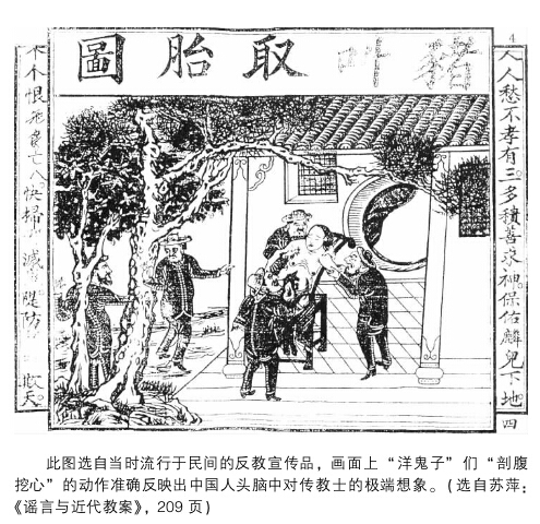 一直被认为是“被动挨打”的普罗大众,也表现出在近代史的叙述中少有的反抗性,中国民间固守的道德伦理、丧葬仪式,信奉的熟人社会中的医生及治疗方法共同构成了鲜明的“地方性”,并持续对西方医疗空间的进入进行冲击,屡次发生的教案事件便是这种冲突的表征,这也促使无论是西方传教者、医生还是中国官方都需要考虑民众的接受能力做出妥协。如杨念群的叙述中,“即使在最为激进的政治口号的规范下,或者在貌似最政治化的行为表达中,仍潜藏着传统行为逻辑的影子。这些影子不但不是和’现代中国’的政治传统相对的,而且很可能成为塑造’现代传统’的一种重要元素。”当然,医学的现代化过程也必然伴随着诸多令人唏嘘的隔离、驱逐、野蛮化地介入,在杨念群的写作中,阴阳生、收生姥姥们也为自己辩白,毕竟在过去的千年间,他们作为传统的执行者之一,是乡村秩序的重要组成。
