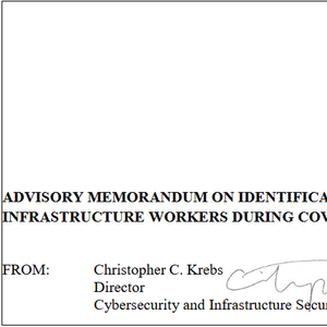 《疫情应对期间,鉴别必要的关键基础设施工作者的咨询意见备忘录》 图片来源:国土安全部文件截图