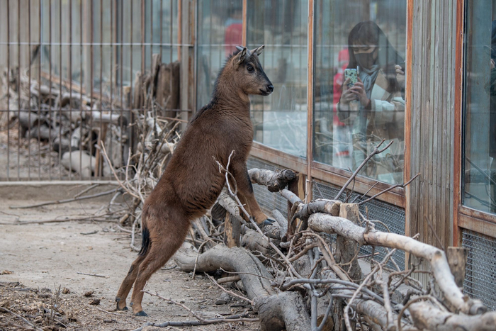 但是北动的这两头斑羚,性格就没那么害羞了,中华斑羚还好一点,红斑羚看到人来会凑过去看—即使现在游客已经没法投喂了—简直跟个小狗狗一样。这是为啥呢?一方面,以前频繁的投喂对它还是有影响;另一方面,被人养大的,大概就对人有了好感吧。