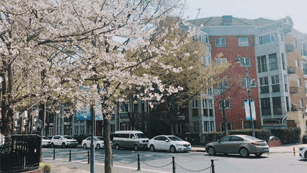 春日里的泰晤士小镇充溢着浪漫的气息,路边枝头上,樱花正开得热闹。