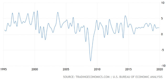 随疫情的扩散,市场信心被逐渐破坏,经济学家则预计2020年度美国整体收入、GDP都会下降,其中摩根大通预测,美国第二季度GDP将下降14%,高盛也将美国二季度GDP增速从最初预测的0%调整至-5.0%。这大大增加了未来的不确定性。但我们从疫情发生开始到三月初整理的情况来看,美国整体经济以及2019年上市公司年报情况来看,总体指标较健康。我们预期,未来随着公司的收入下降,势必会引发公司裁员、失业率上升、GDP倒退等一系列连锁反应,所以美国中期前景并不乐观。
