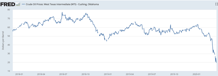 相比于沙特和俄罗斯,美国页岩油生产成本较高,美国页岩油生产盈亏平衡点约在每桶40美元左右,截至3月30日,美国WTI原油价格一度跌破每桶20美元。