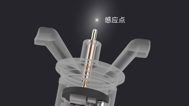 它的顶端有一个24K镀金的感应探针,感应到水流后,内部芯片就会自动开机。