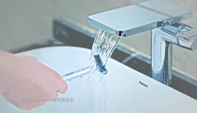 它采用了专利的FIowSensing传感技术,冲水自动开机。