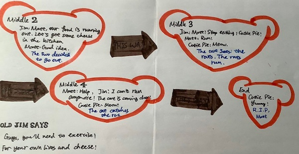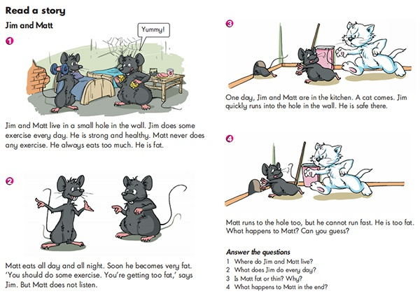 在第二单元第一课中,课本简述了Jim and Matt的故事,老师要求学生阅读故事后制作结构视图,希望学生掌握课文逻辑以及课文中各项要素之间的相互联系。