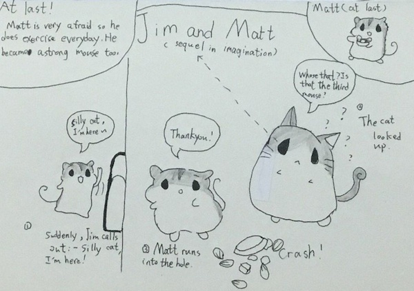 五(3)班 张瀚沁小朋友还能根据故事内容进行续编创做创作。如上图。图1 是课文内容,图2是创作部分。
