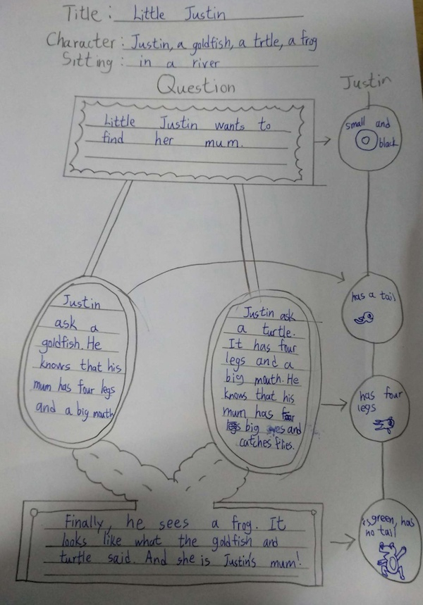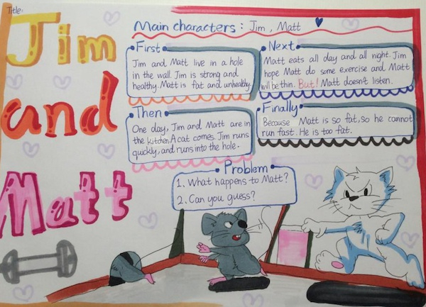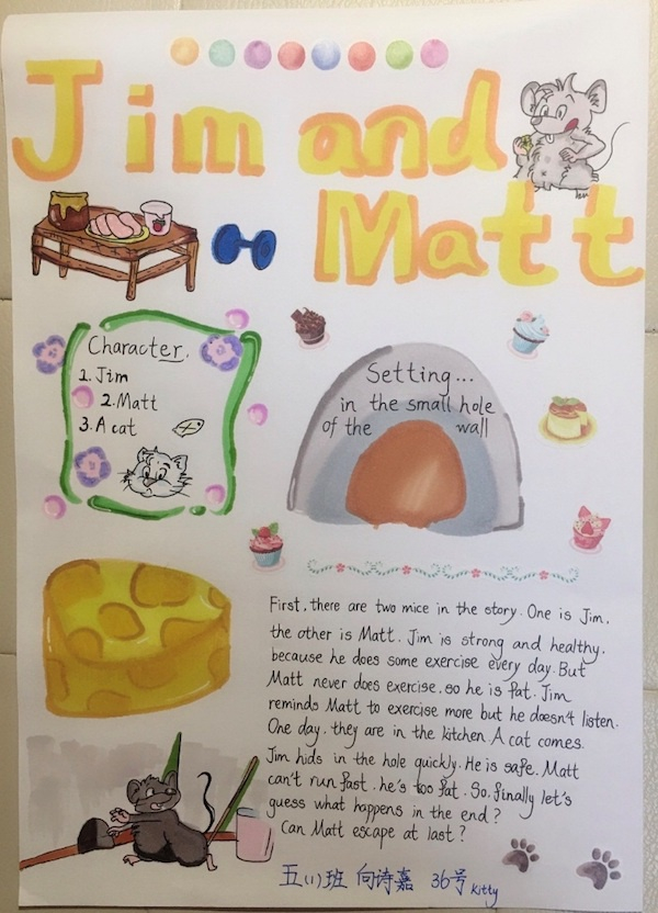 对于这样带有趣味性的英语作业,学生们展现出了极大的积极性。上海市建平实验小学的顾申慧老师介绍说,“我们希望学生们在读故事的过程中,根据自己的理解的画结构视图,目的是为了考察学生的阅读理解能力,培养思维能力。首先要理解文本内容,接着要理清故事内在逻辑才能进行进一步的创作。这样对于学生学习英语既激发了兴趣,也加深了对于英语的掌握程度。”
