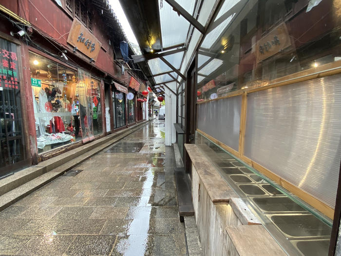受阴雨天气和降温影响,3月28日上午9:00至下午13:15,七宝老街累计入园人数554人,与七宝老街2019年度接待游客约1000万人次、日均客流2-3万人次、黄金周最高峰时一天10万的人气相比,落差还是很明显的。七宝古镇公司也意识到了这一点,正牵头与“饿了么”平台以及七宝镇域内的邻里中心进行合作,通过商家抱团取暖的方式,将最能代表七宝“老味道”的20多种名小吃制成半成品,通过物流直接配送到56个社区,条件许可后再向全市其他地区铺开,这对老街实体店家的现场销售将是个有效补充。