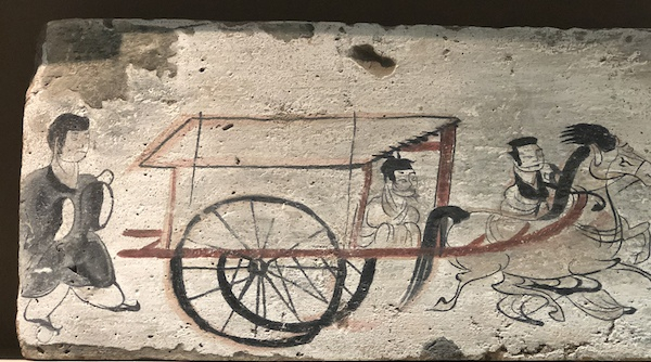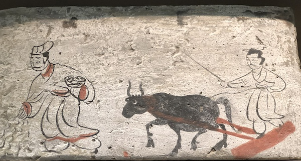 魏晋墓砖壁画大部分为一砖一画,记录和反映了魏晋时期社会各阶层的现实生活。墓砖壁画以天然矿物质为颜料,红、黑为主色,这也和当时崇尚红、黑的社会习俗有关。