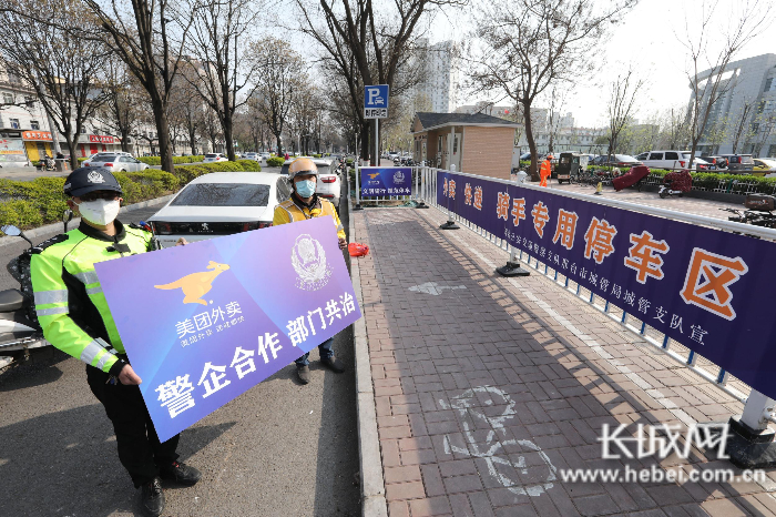 长城网邢台讯(记者 齐彦红 通讯员 黄鹏)3月30日,在邢台市三院东门口,外卖小哥和执勤交警正在为快递、外卖专用停车位设置标示。为进一步规范市区交通秩序和交通营运环境,保障人民群众安全出行,满足快递、外卖等停车需求,邢台市公安交警支队和市城管局联合设置快递、外卖专用停车位。