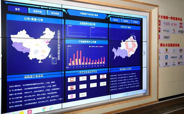 在中国菠萝电商产地直供基地内显示的菠萝产销对接大数据(2020年3月26日摄)。新华社记者邓华摄