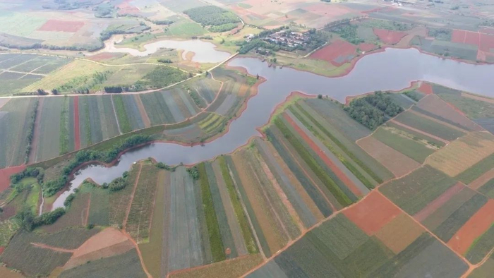 在广东农垦徐闻海鸥农场拍摄的以菠萝为主的多种作物农田(2019年3月28日无人机照片)。新华社记者邓华摄