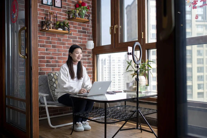 2月22日,专业心理咨询师王怿在家中进行公益直播,对观众进行心理疏导 熊琦/摄