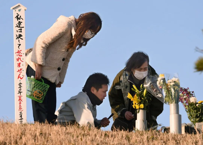 2016年3月11日,在日本宫城县名取,人们悼念东日本大地震的遇难者