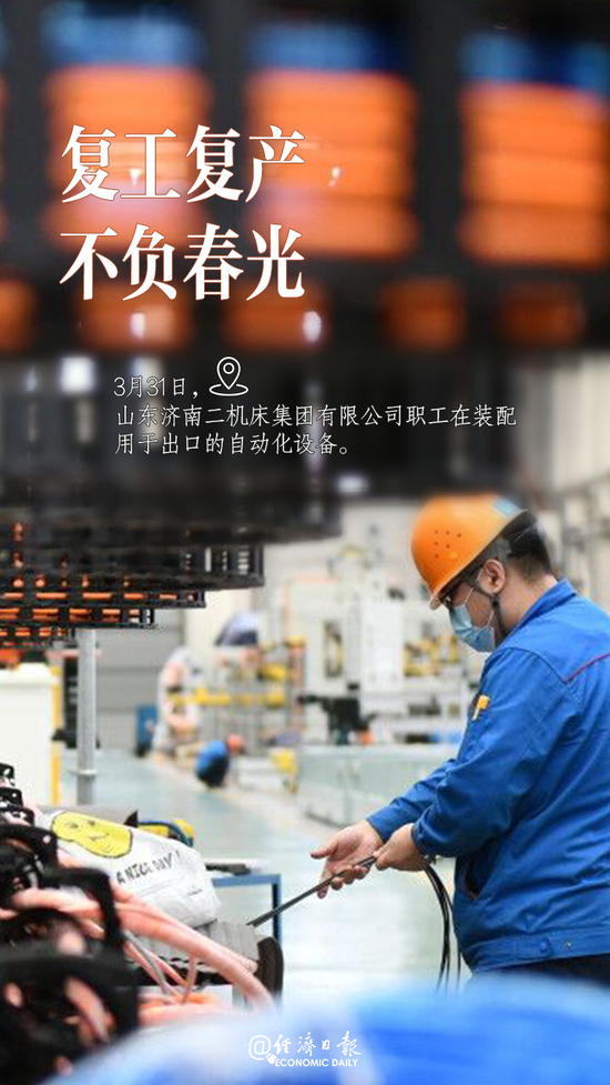 厂房里机器的轰鸣声,奏出最动听的“春之曲”。高铁、桥梁、水利等国家重点工程的工地上,头戴鲜艳安全帽的工人们在紧张施工。截至3月28日,全国规模以上工业企业平均开工率为98.6%,人员平均复岗率为89.9%;中小企业复工率为76%,3月份以来日均升幅在1个百分点左右。已有1亿农民工外出务工,占春节前返乡农民工的80%。